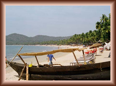 The beach is featured as the Indian residence of Jason Bourne (Matt Damon) in the film The Bourne Supremacy (2004). The initial footage in the movie gives a good idea of the natural beauty of the beach - the distinctive tree covered rocks at one end (known locally as Monkey Island or Palolem Island - to which tours are run) and beach shacks.